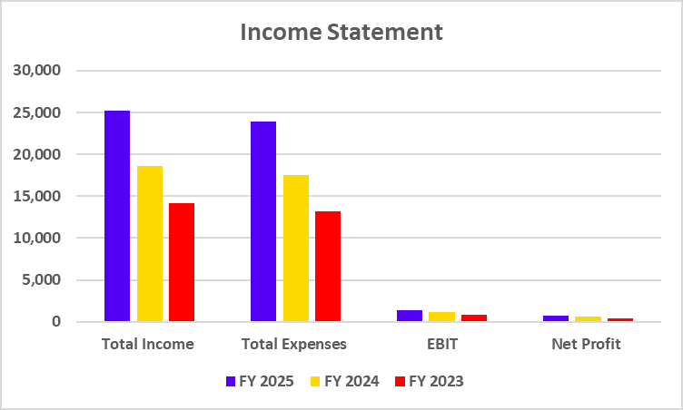 Total Income | 25,189 | 18,621 | 14,109 |