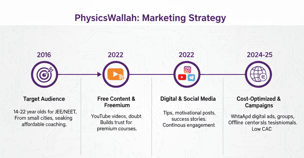 - Cost-Optimized Campaigns : Unlike big ad spenders like Byju’s and Unacademy, PW has relied more on targeted digital ads, SEO and student testimonials. The advantage of this is that the cost of acquiring new students (CAC) has been very low.